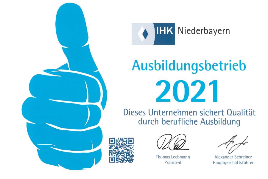 Wir wurden auch dieses Jahr wieder von der IHK Niederbayern mit der Urkunde „Anerkannter Ausbildungsbetrieb“ ausgezeichnet. Bewirb dich jetzt unter Karriere für eine Ausbildung in unserem Betrieb und werde Teil der KÖNIG-Gruppe! Wir freuen uns auf DICH!